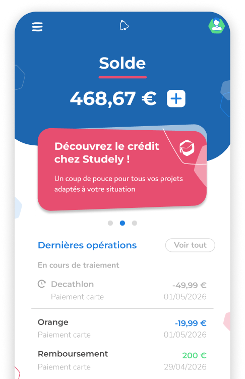Si vous êtes mineur âgé de 16 à 18 ans : vous pouvez obtenir un RIB et une application pour toutes vos transactions. Le compte de paiement Studely n’offre pas la possibilité aux mineurs d’obtenir une carte de paiement (celle-ci est uniquement fournie aux majeurs à partir de 18 ans)